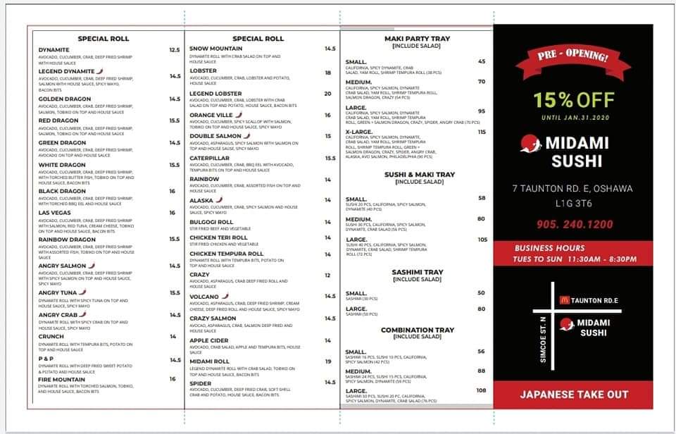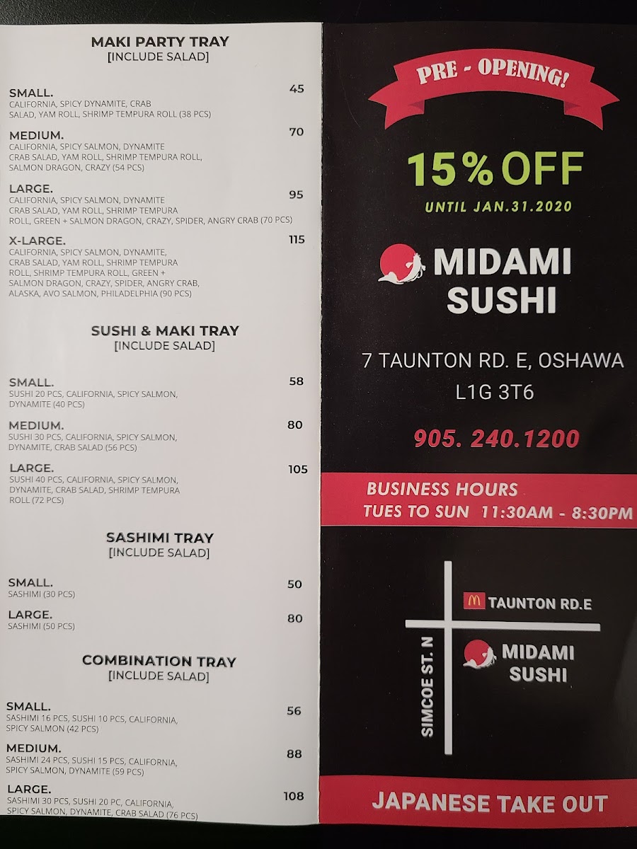 Welcome to Midami Sushi, a hidden gem nestled at 7 Taunton Rd E, Oshawa, Ontario. This cozy spot has charmed locals with its remarkable food quality and delightful ambiance. Customers rave about the fresh, thickly sliced sashimi and beautifully presented sushi rolls, solidifying Midami as a top destination for sushi lovers in Durham.
