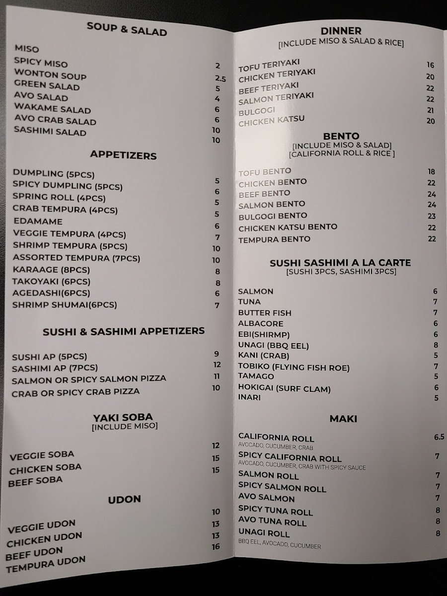 Vegetarian. Avocado, cucumber, pickled radish, inari, and asparagus. 8pcs